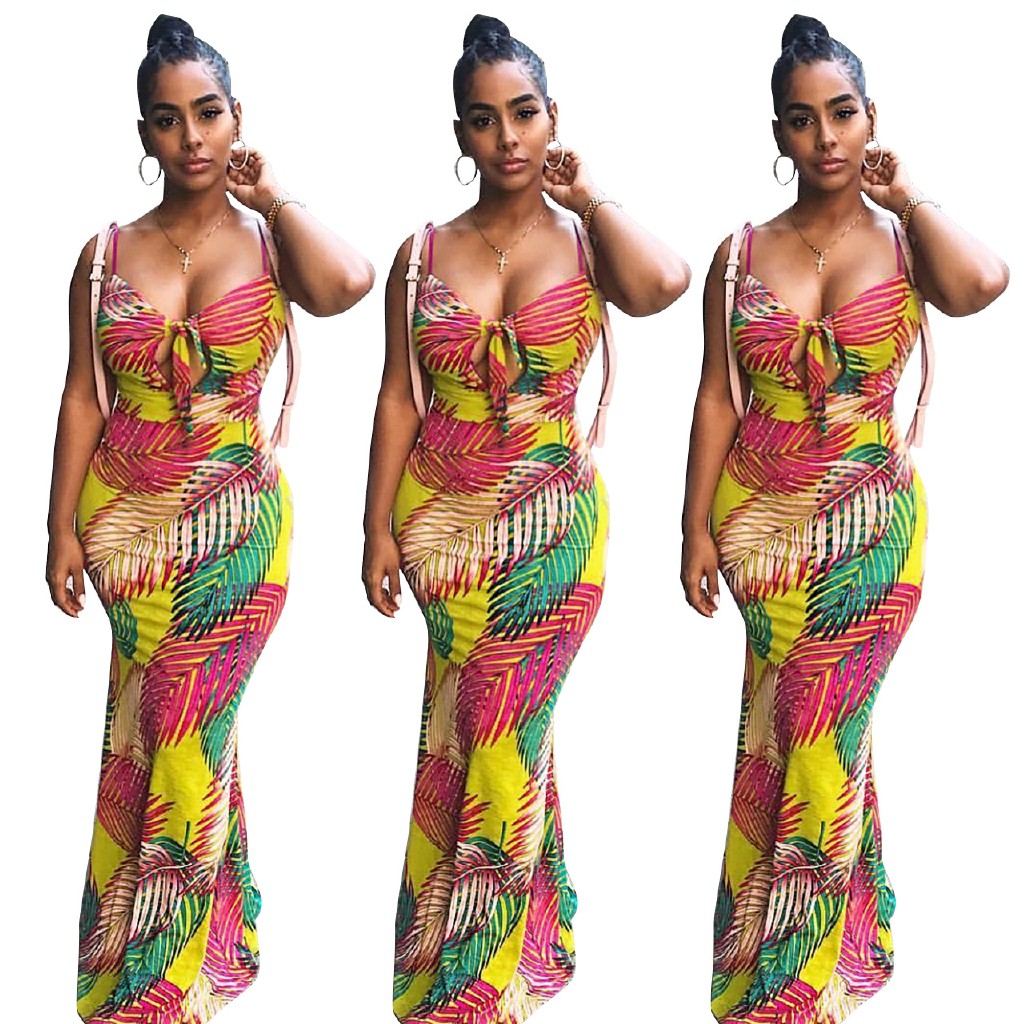 7 Shops Summer Beach Maxi Dress Women Deep V Neck Print Party