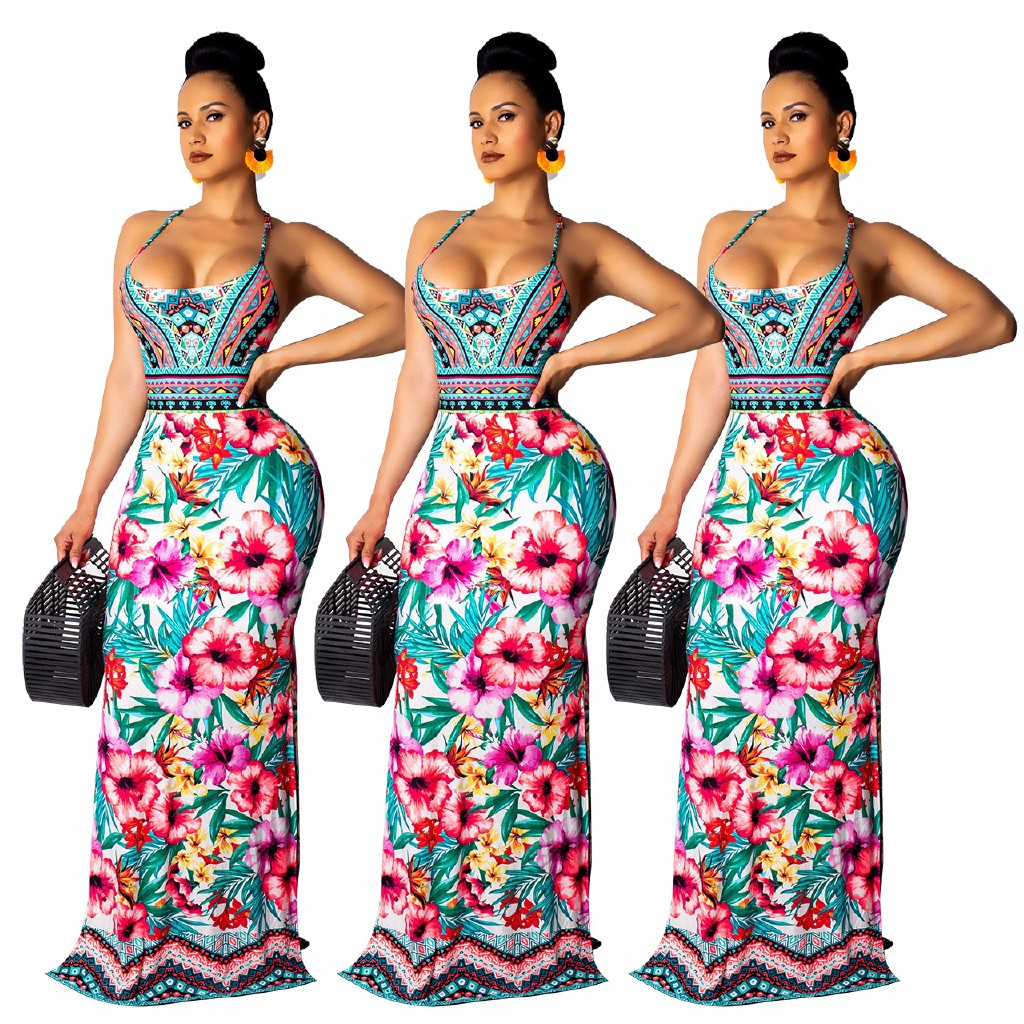 Buy Elegant Bohemian Style Sleeveless Flower Long Dress Regular