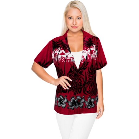 La Leela Blouses Hawaiian Shirt Button Up Women Beach Wear Short