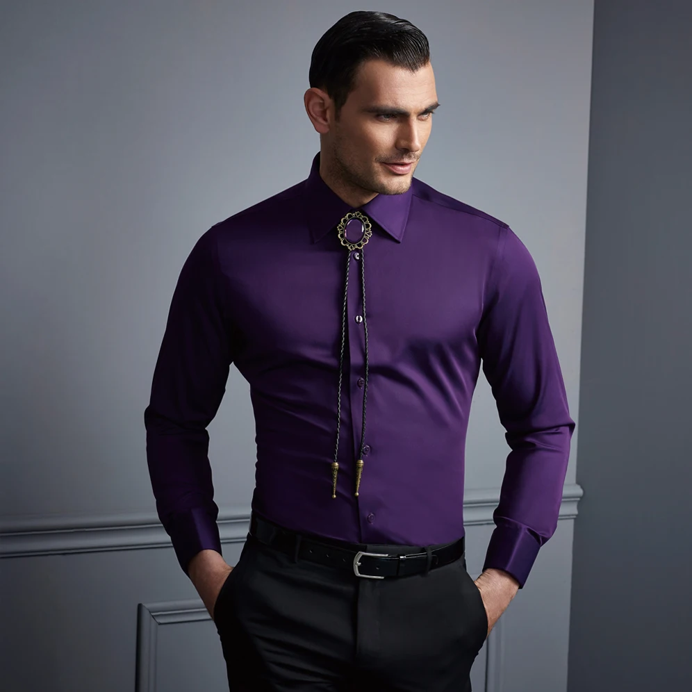 Versma New High Quality Men Fashion Dress Shirt Turn Down Collar