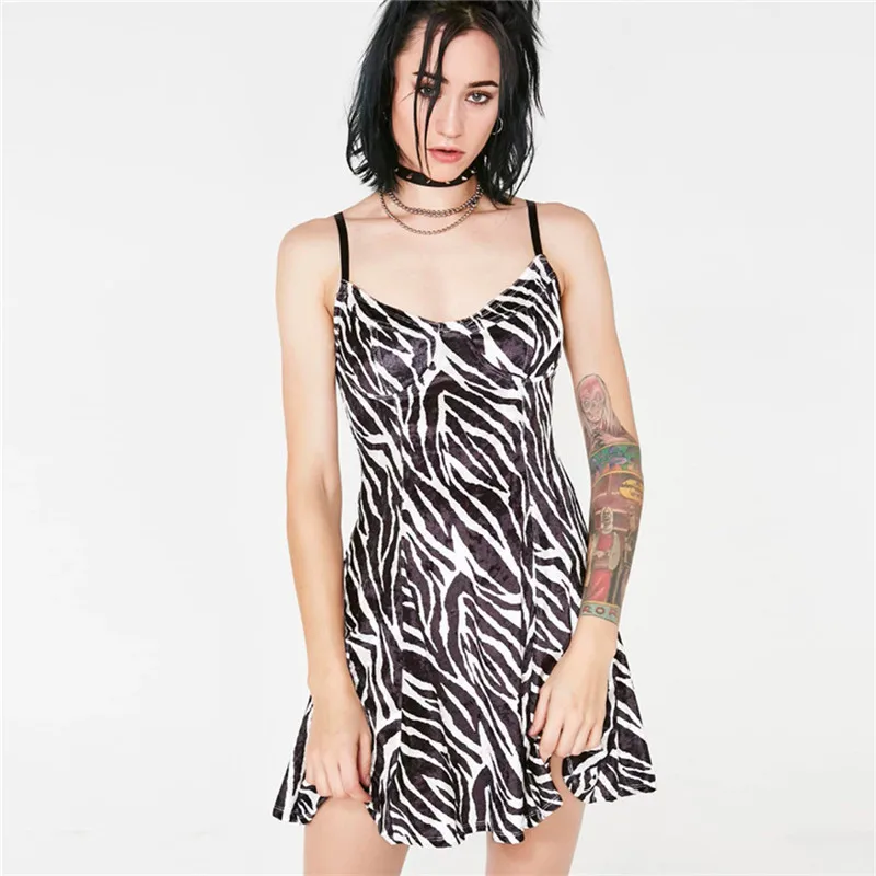 Women Summer Sleeveless A Line Mini Dress Fashion Zebra Striped