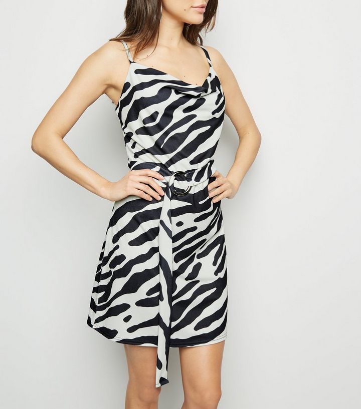 Cameo Rose Black Zebra Cowl Neck Dress New Look