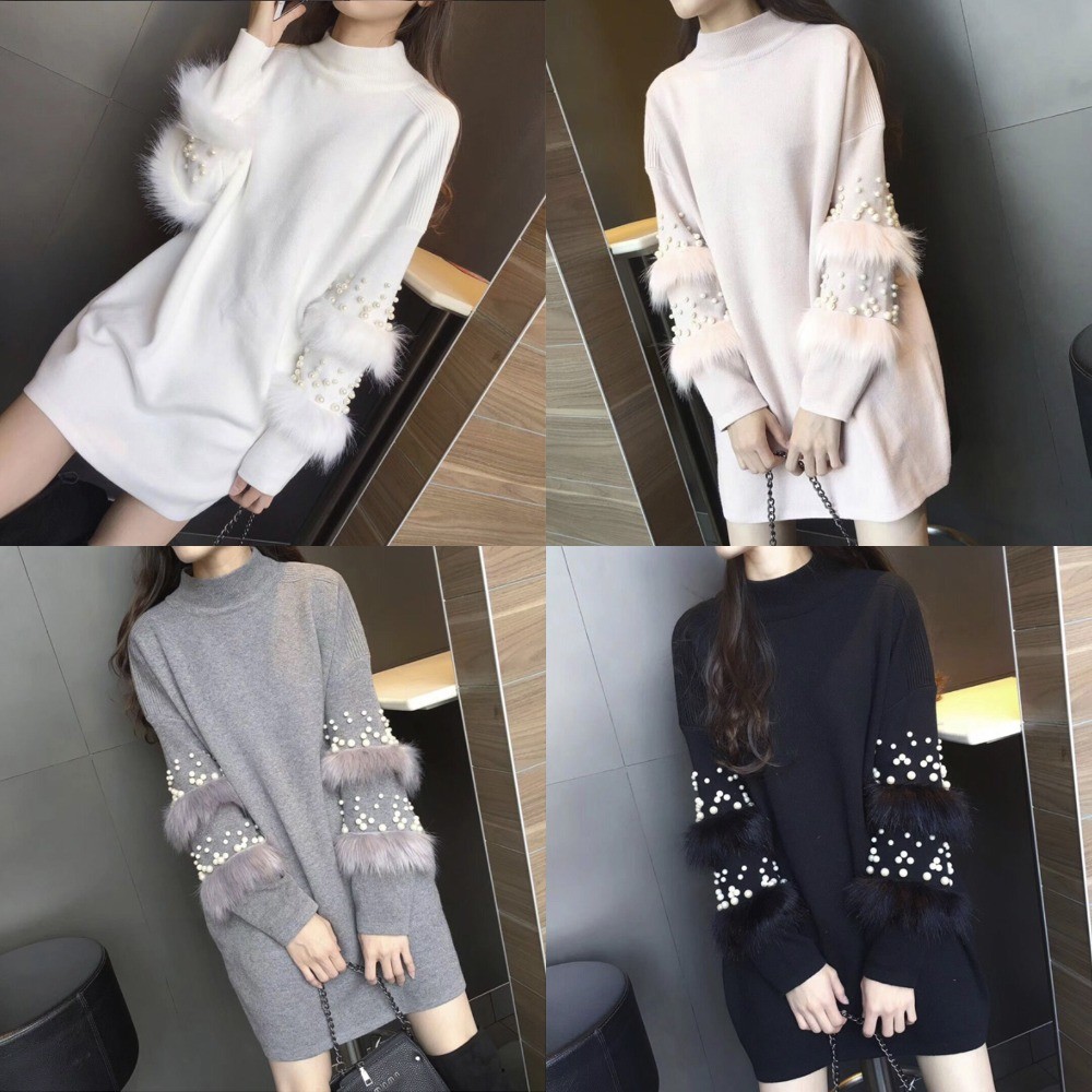 Casual Women Winter Long Sweaters Pullover Jumpers Real Rabbit Fur