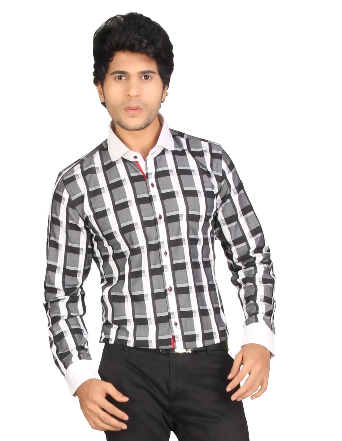 Red Country Men S Classy Grey Black Cotton Checkered Slim Fit Club