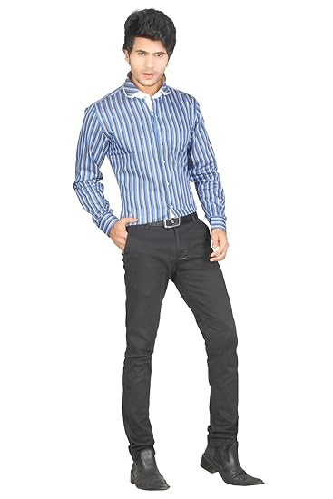 Red Country Men S Classy Black Cotton Striped Slim Fit Club Wear