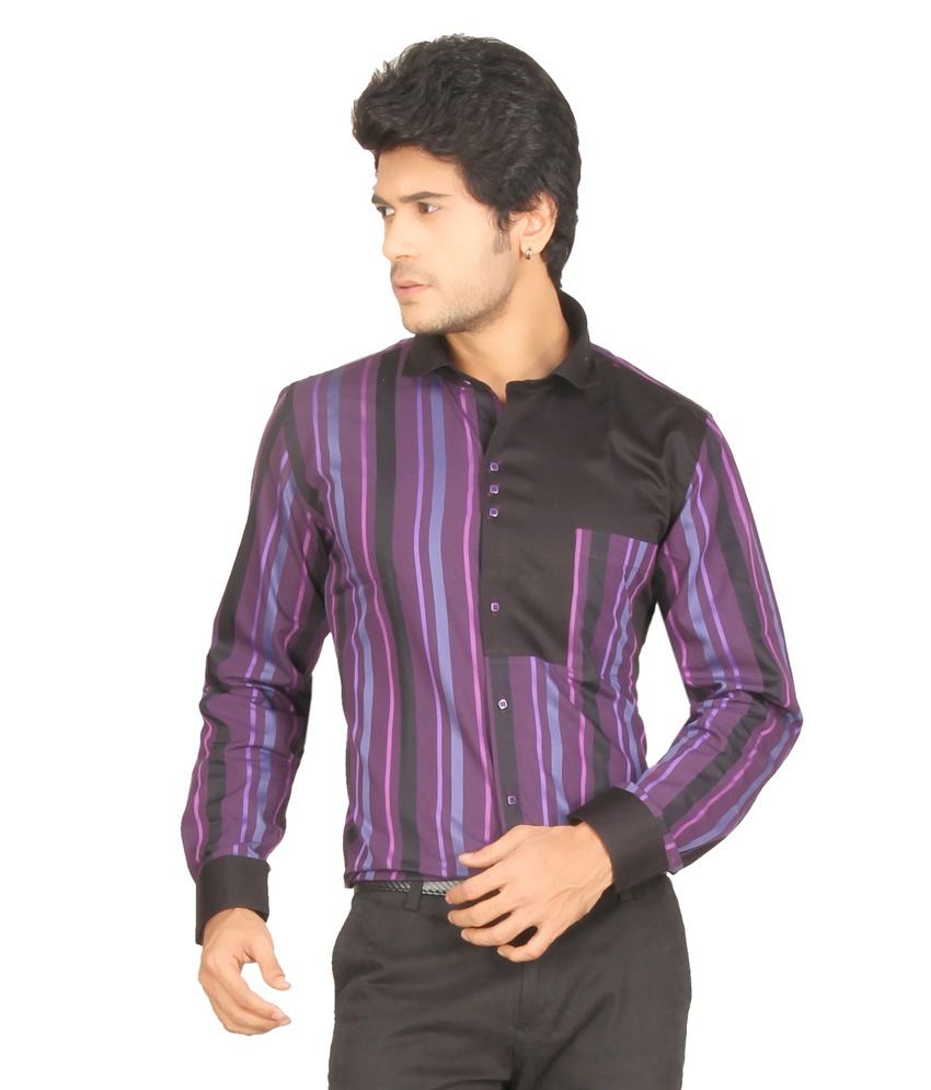 Red Country Classy Purple Black Cotton Striped Slim Fit Club Wear