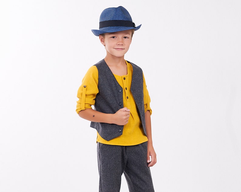 Boys Tweed Suit Ring Bearer Outfit Boys Wool Vest And Pants Etsy