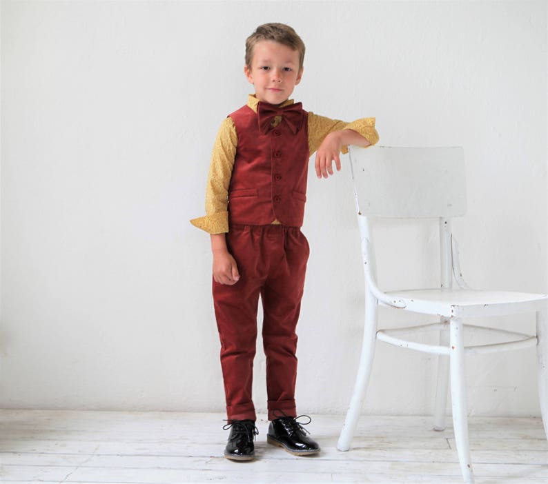 Boys Suit Velvet Suit Toddler Boy Vest And Pants Set Ring Etsy