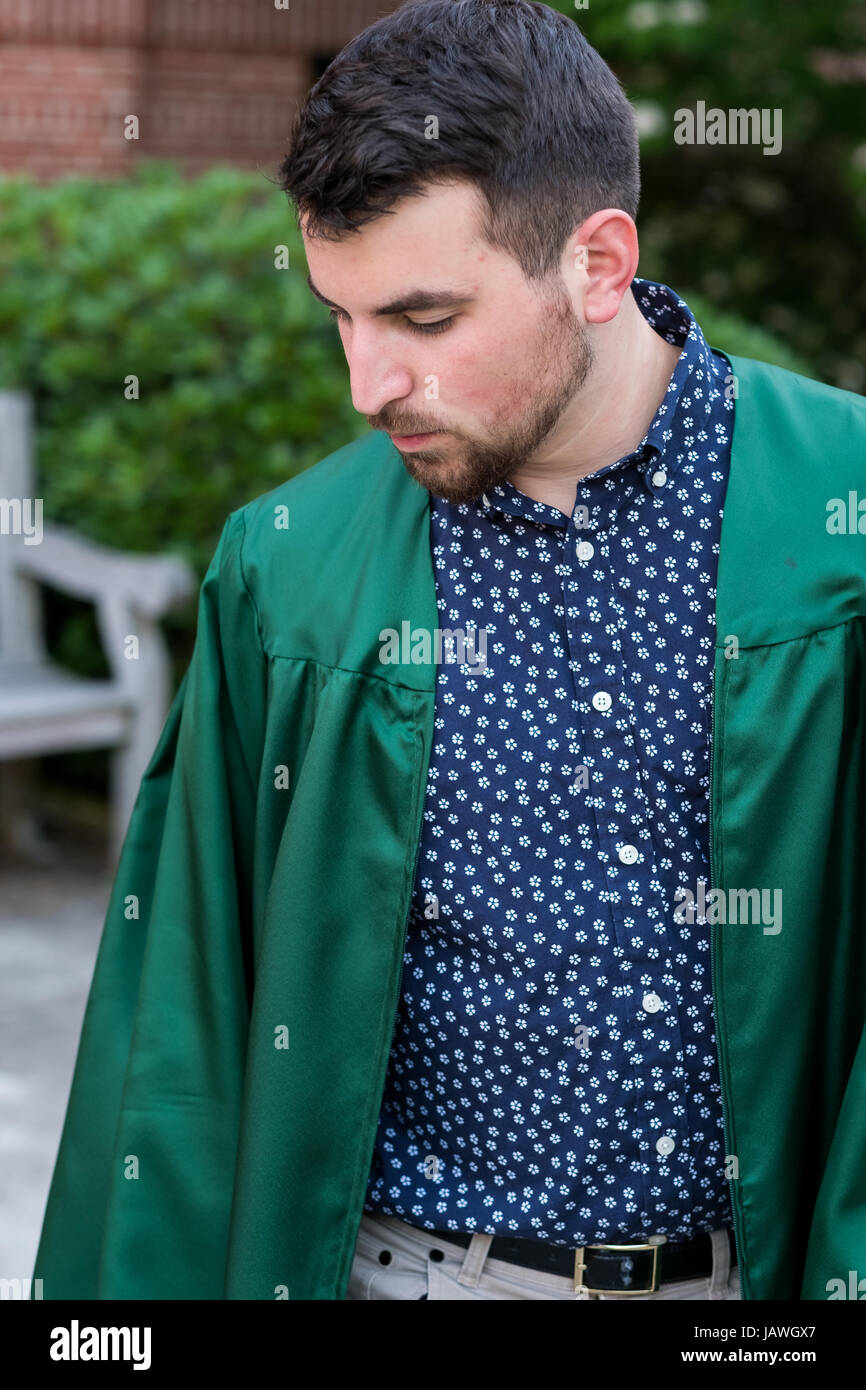 Portrait Of A Young Man In A Graduation Outfit Looking Up Stock