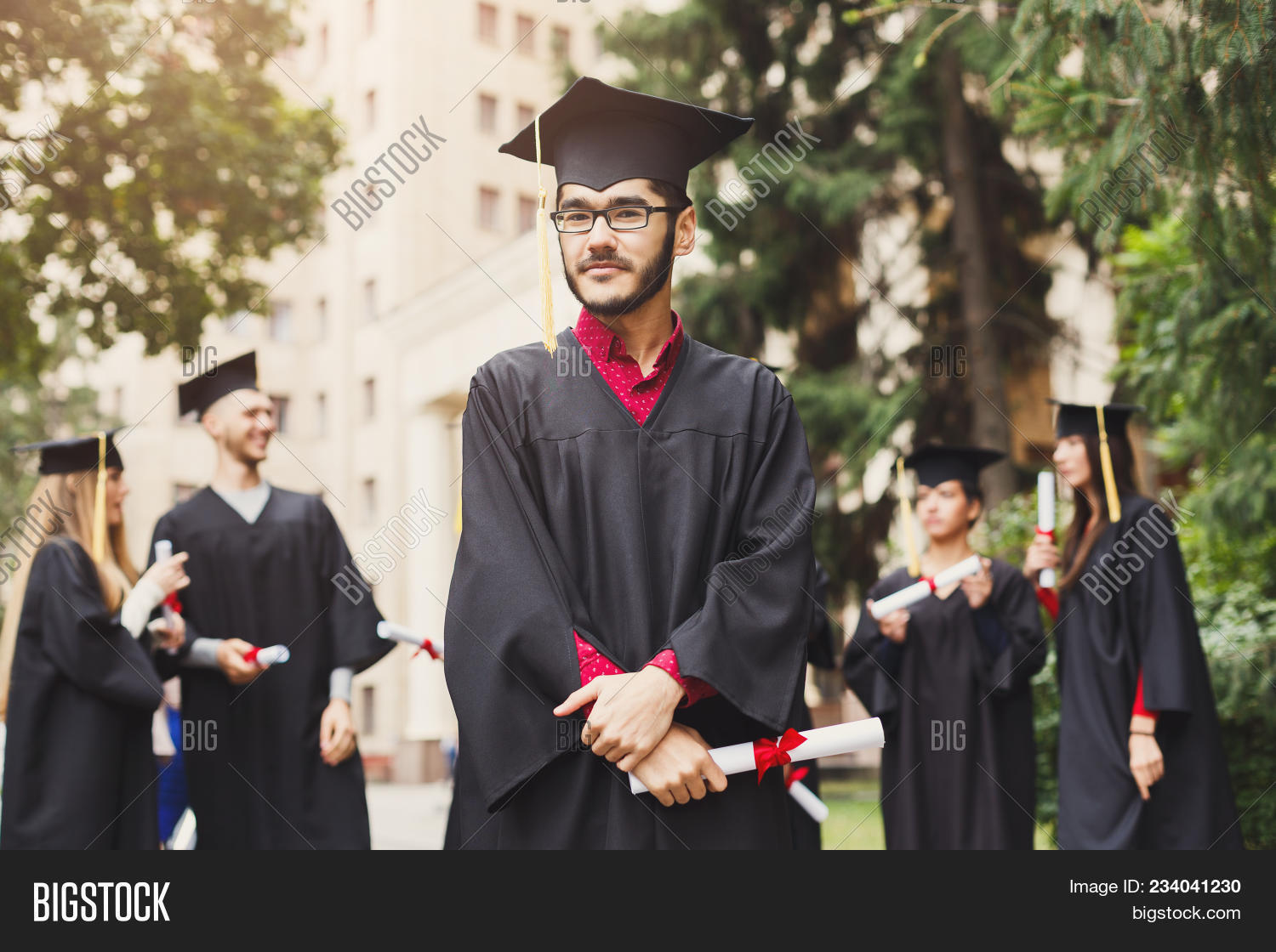 Portrait Of An Asian Man In Graduate Clothes College Graduation