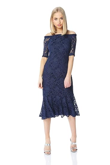 Roman Originals Women Lace Midi Bardot Dress Ladies Christmas