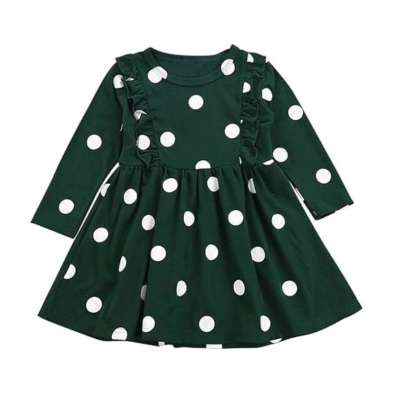 Girl Dress Girls Polka Dot Print Long Sleeve High Waist Dress Kids