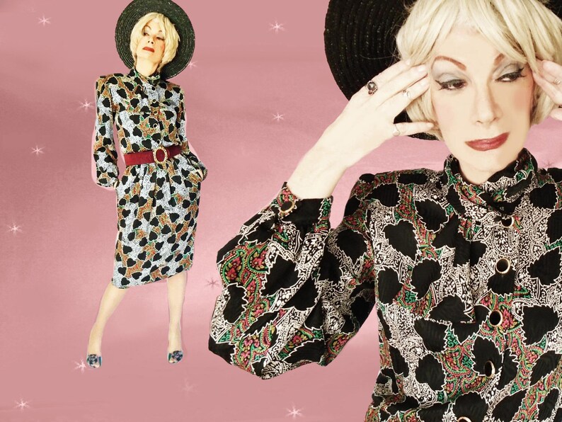 80s De La Renta Silk Dress Medium Pencil Skirt Sheath Classy Etsy