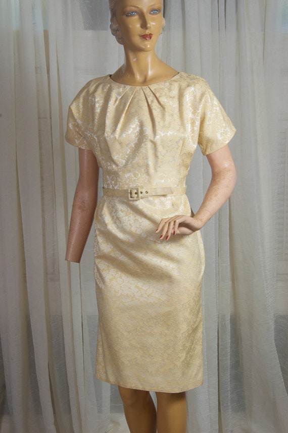 1960s Pale Gold Damask Sheath Dress And Bolero Jacket Classy Etsy