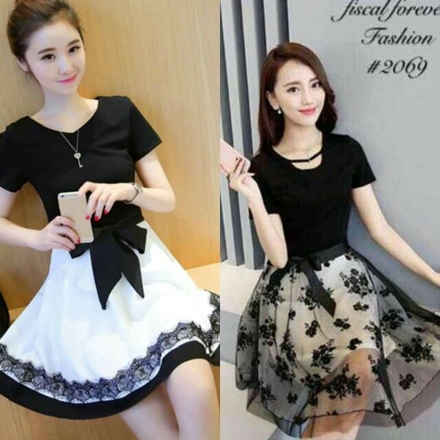 Classy Korean Dress With Lace Shopee Philippines