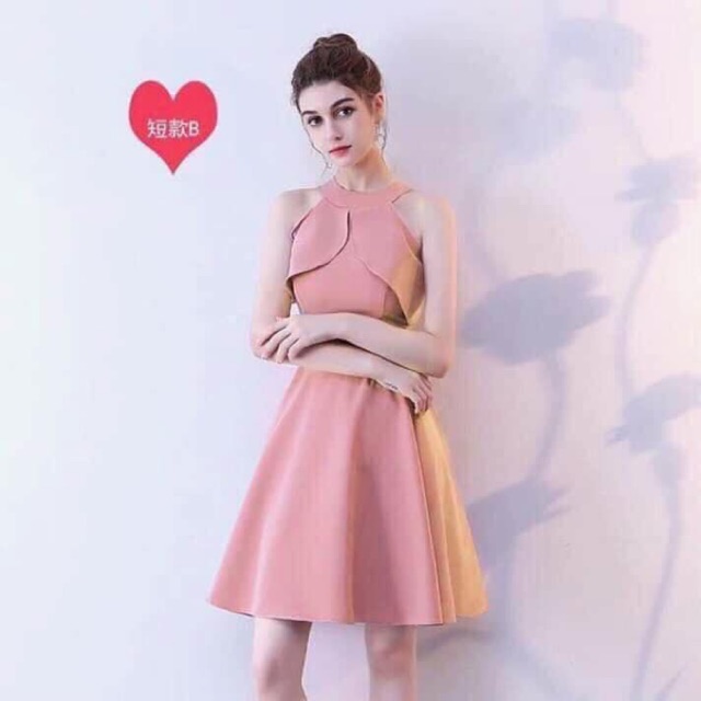 Classy Korean Style Elegant Sexy Pink Backless Neck Halter Annual