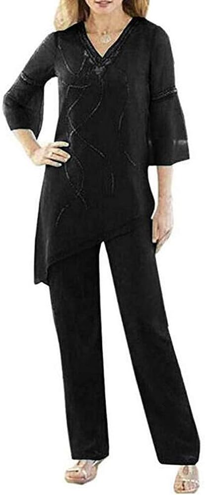 Women S Black 2 Pieces Chiffon Mother Of The Bride Pant Suits 2 3