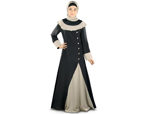 Mybatua Elegant Fancy Black And Warm Grey Polyester Abaya Etsy