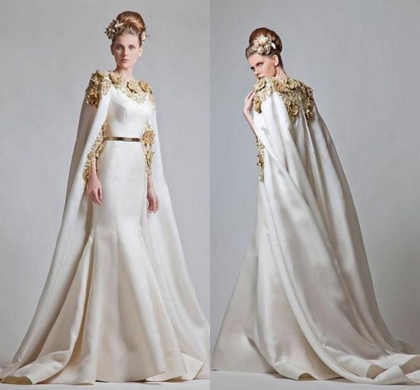 Elegant Zuhair Murad 2017 Evening Dresses Gold Appliques Satin