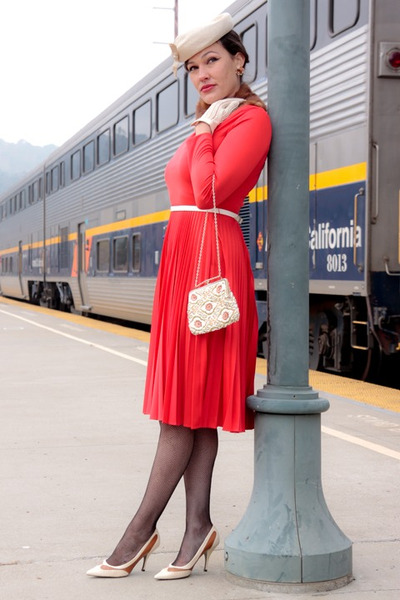 Tawny Stilettos Vintage Shoes Red Polyester Vintage Dresses