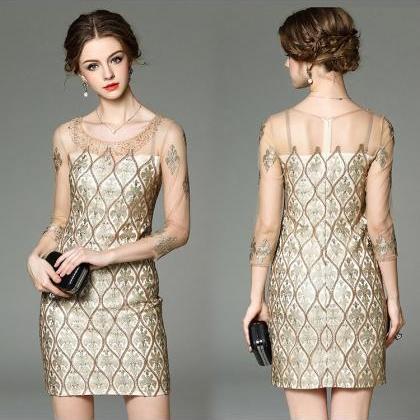 Golden Lace Beaded Classy Vintage Style Dress On Luulla