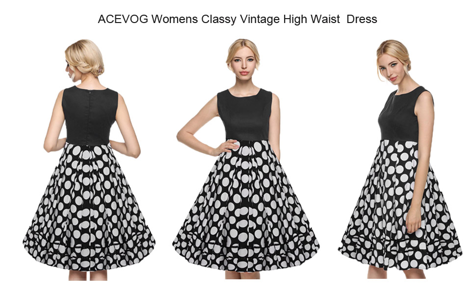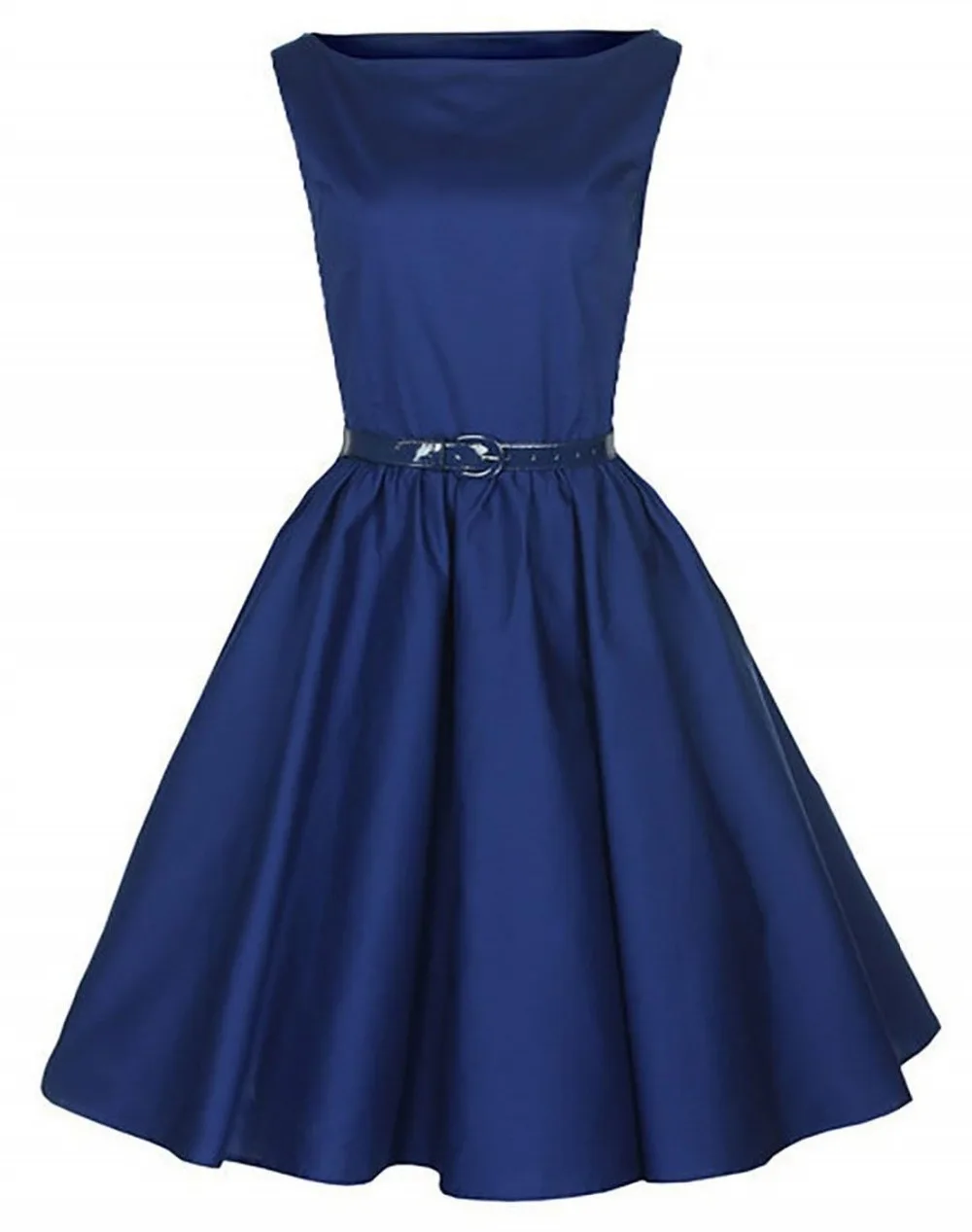 Sishion 50s 60s Vintage Dress Hepburn Retro Swing Sleeveless Party
