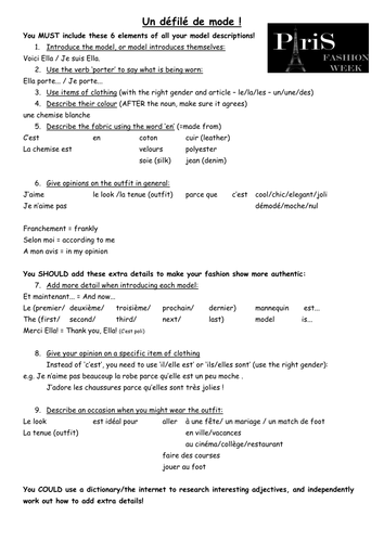 Fashion Show Un Defile De Mode Helpsheet Teaching Resources